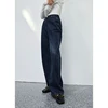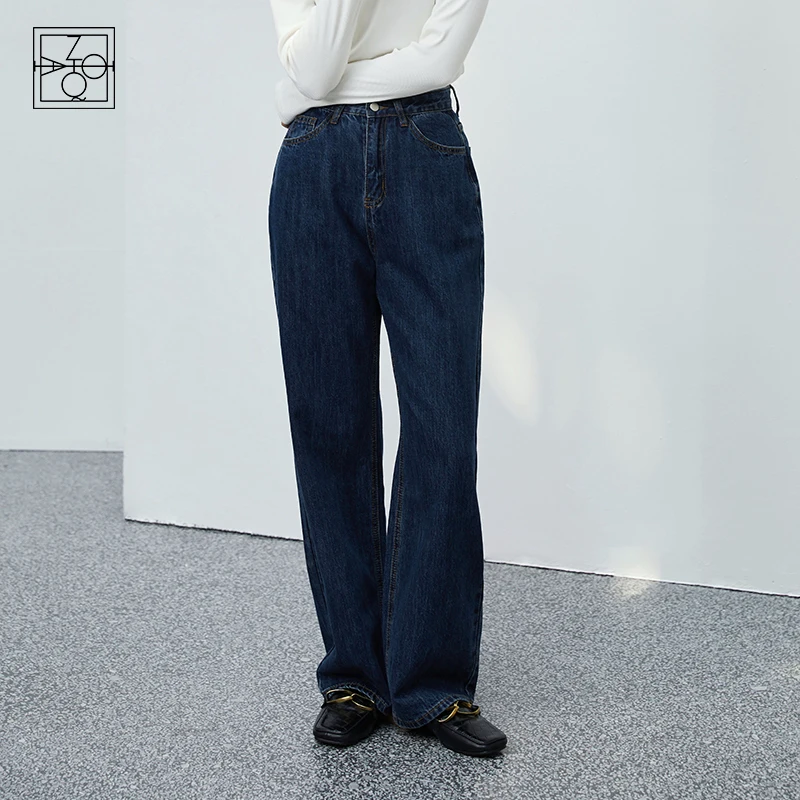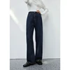 ZIQIAO – Jean rétro bleu foncé pour femmes, taille haute, coupe droite, ample, jambes larges, décontracté, 100% coton
