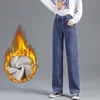 Jean coréen en peluche, pantalon à jambes larges pour femmes, taille haute, ample, nouvelle tendance, automne et hiver 2021