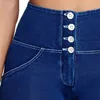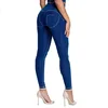 Jean cintré à coupe fuselée pour femmes, vêtement athlétique, style Indigo, taille haute, avec boutons