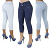 Pantalon court décontracté pour femmes, Sexy, couleur unie, boutons, taille haute, Slim, respirant, élastique, crayon, 2021