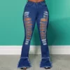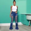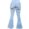 Jeans ajouré pour femmes, mode européenne et américaine, design de trous et coutures du bas, pantalon micro évasé tendance