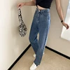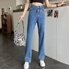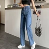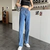 Jean délavé pour femmes, nouveau pantalon en Denim classique rétro bleu, taille haute, jambes larges, Long, décontracté, couleur unie, été, 2020