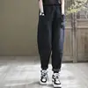 Jean en velours épais pour femmes, ample, grande taille, rétro, taille élastique, noir, décontracté, pantalon Harem, collection automne et hiver