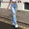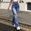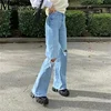 Jean évasé déchiré pour femme, taille haute, avec fermeture éclair, Streetwear, jambes larges