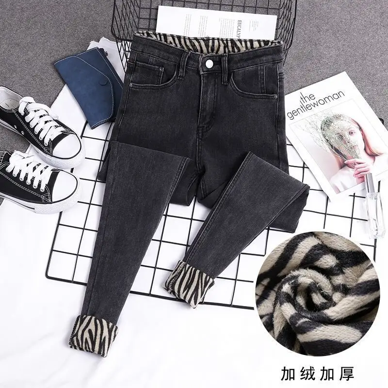 Jean polaire extensible imprimé léopard zèbre pour femme, taille haute, nouvelle collection hiver 2021