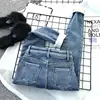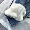 Jean en velours d'agneau bleu clair, taille haute, épais, chaud d'hiver, pantalon en coton, pieds crayon épais, bottes