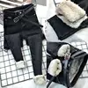 Jean en velours d'agneau bleu clair, taille haute, épais, chaud d'hiver, pantalon en coton, pieds crayon épais, bottes