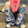 Jean Déchiré Taille Haute pour Femme Pantalon Droit Ample à Jambes Larges, Y2K, Collection Printemps et Automne