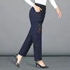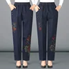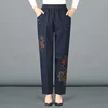 Jean pour femmes d'âge moyen, surdimensionné, décontracté, taille haute, pantalon droit, taille 4xl, ample, poches brodées, Denim