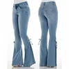 Jean en denim à lacets pour femme, pantalon évasé, extensible, taille moyenne, bleu, lavé, années 90, nouvelle collection printemps automne