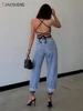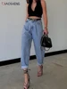 BIAOSHENG – jean Baggy bleu pour femmes, jambes droites, décontracté, taille haute, jambes larges, haute qualité, mode coréenne, Style Y2K, nouveau
