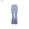 Jean déchiré à taille haute pour femmes, pantalon en Denim, taille haute, jambes longues, mode Active, Maxi, haut parleur de rue