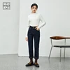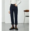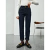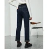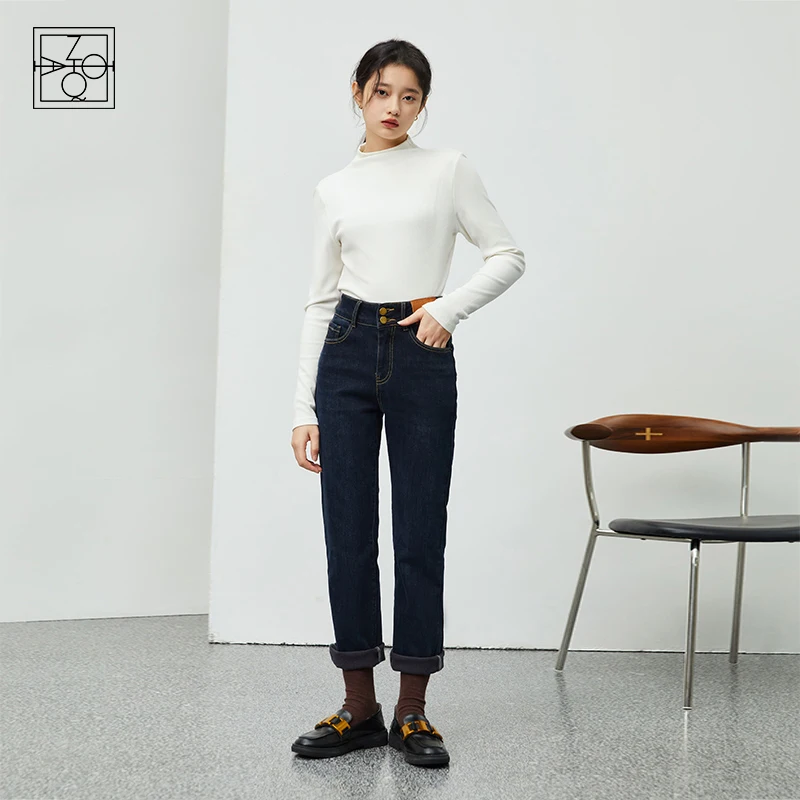ZIQIAO – jean Denim bleu foncé pour femme, pantalon en coton, tout assorti, taille haute, jambes droites, en cachemire, nouvelle collection hiver