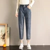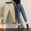 Jean taille haute élastique pour femme, pantalon en Denim bleu, Streetwear, chaud, hiver
