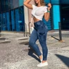 Jean slim taille haute extensible pour femme, Streetwear, poches latérales, Design, délavé, pantalon crayon, Denim, 2021