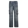Y2K – Jean Cargo taille basse pour femmes, pantalon en Denim froncé avec ceinture, style rétro