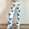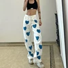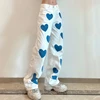 Jean en Denim pour femmes, pantalon ample, imprimé amour, boutons décontractés, taille haute, jambes droites, mode automne