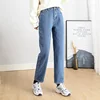 Pantalon Harlan à neuf Points pour femmes, Jeans en Denim extensible, coupe slim, ample et mince, taille haute, avec fermeture éclair, en polaire
