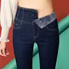 FAKUNTN – jean Streetwear taille haute en velours pour femme, pantalon en Denim, moulant, extensible, chaud, grande taille