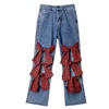 Streetwear – jean à carreaux avec nœud pour femme, pantalon en Denim, ample et droit, taille haute, tendance, nouvelle collection automne 2021