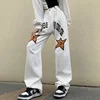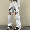 Jean Streetwear blanc imprimé pour femme, pantalon en Denim, coupe droite, ample, taille haute, nouvelle collection automne 2021