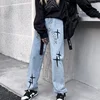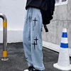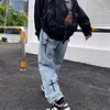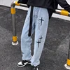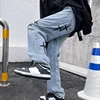 Jean Streetwear bleu clair avec lettres brodées pour femmes, pantalon en Denim, ample et droit, taille haute, nouvelle collection automne 2021
