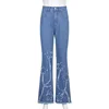 Jean taille haute en Denim pour femmes Y2K, Hipster, décontracté, à la mode, brûlé de fleurs, coupe ajustée, nouvelle collection