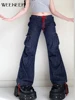 Weekeep – pantalon en Denim taille basse pour femmes, poches décontractées, Patchwork, droit, maman, coréen, Streetwear, basique, Harajuku