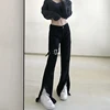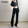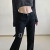 Darlingaga – jean évasé pour femme, Streetwear gothique, Style Punk, boucle à œillet, Grunge foncé, pantalon taille haute, Denim fendu