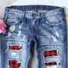 Pantalon Long en Denim pour femme, jean déchiré avec trous, Patchwork