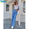 Jean à jambes larges pour femmes, pantalon en Denim, coupe droite, ample, taille haute, Baggy décontracté, pantalon délavé classique, Y2k, grande taille