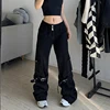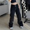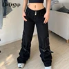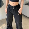 Darlingaga – jean Streetwear gothique à boucle Grunge pour femmes, pantalon Cargo, poches, Punk Dark Academia, Baggy, Denim, noir