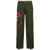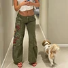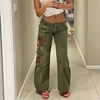 Pantalon Cargo pour femmes, Streetwear, poches, Patchwork, Baggy vert, taille basse, jambes droites, Jean Boyfriend Y2K imprimé esthétique