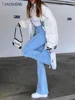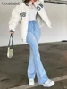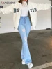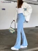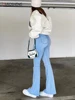 Jean déchiré évasé pour femmes, pantalon en Denim, jambes larges, taille haute, élastique, décontracté, Slim