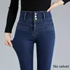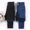 Jean slim Sexy en velours pour femme, pantalon crayon, taille Super haute, chaud, ventre rétro, bleu, noir, élastique, nouvelle collection