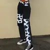 Pantalon en Denim à taille haute pour femme, Streetwear, jean en Patchwork de vache, à la mode, 2022
