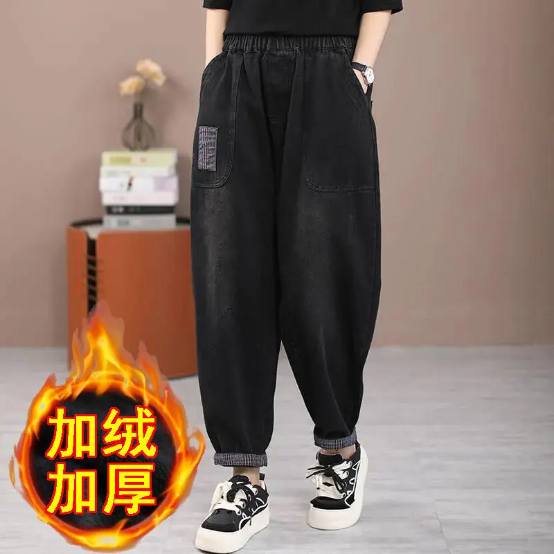 Jean sarouel en velours pour femme, pantalon rétro décontracté, taille élastique, grande taille, couture, Harajuku, nouvelle collection hiver