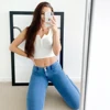 Melody – jean moulant bleu clair, pantalon de sport, pantalon moulant, extensible, mi long, été