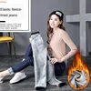 Pantalon molletonné taille haute pour femme, survêtement en coton chaud et épais, vêtement d'extérieur amincissant et extensible
