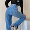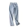 Pantalon droit taille haute pour femme, jean Slim, ample, décontracté, fendu, lavé, mode maman, automne hiver