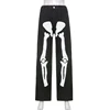 Jean noir style gothique pour femmes, Baggy, Hippie, Streetwear, Academia foncée, taille basse, jambes larges, pantalon à cloche