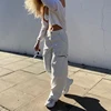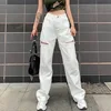 WeiYao – jean à taille haute pour femme, Streetwear, poches blanches, Baggy, ajouré, jambe droite, Patchwork coréen, été