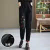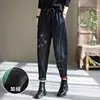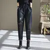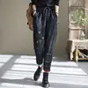 Jean sarouel en velours pour femme, pantalon taille haute, épais, ample, droit, avec broderie et cordon de serrage, collection automne et hiver