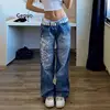Jean délavé imprimé pour femme, ample et décontracté, taille basse, plis, Style européen et américain, tendance, automne 2022