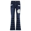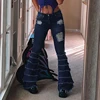 SUCHCUTE – jean gothique déchiré évasé Harajuku, pantalon en Denim pour femmes, taille basse à volants, décontracté, Streetwear, Baggy
