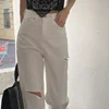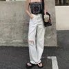 Jean déchiré à jambes droites et amples pour femme, pantalon décontracté, blanc, taille haute, mode urbaine, Style coréen, Denim