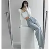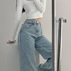 Jean coupe droite taille haute pour femme, pantalon Cargo, Streetwear, Baggy, délavé, Y2K, collection automne