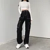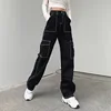 Jean Baggy à poches en Patchwork pour femmes, pantalon en Denim, ample, noir, à la mode, Streetwear, Cargo