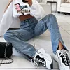 Jean taille haute pour femme, coupe ample et droite, mode automne/hiver 2021