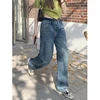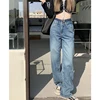 Jean Double taille pour femmes, pantalon large, ample, mode, taille haute, couleur contrastée, décontracté, jambes droites